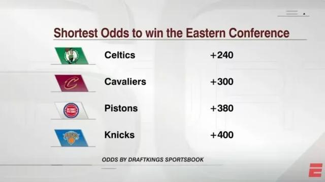 跟着塔图姆这位六届全明星时尚回来,凯尔特东谈主本赛季东部冠军赔率飙升,趁势力压骑士登顶第一,活塞第三,尼克斯第四。