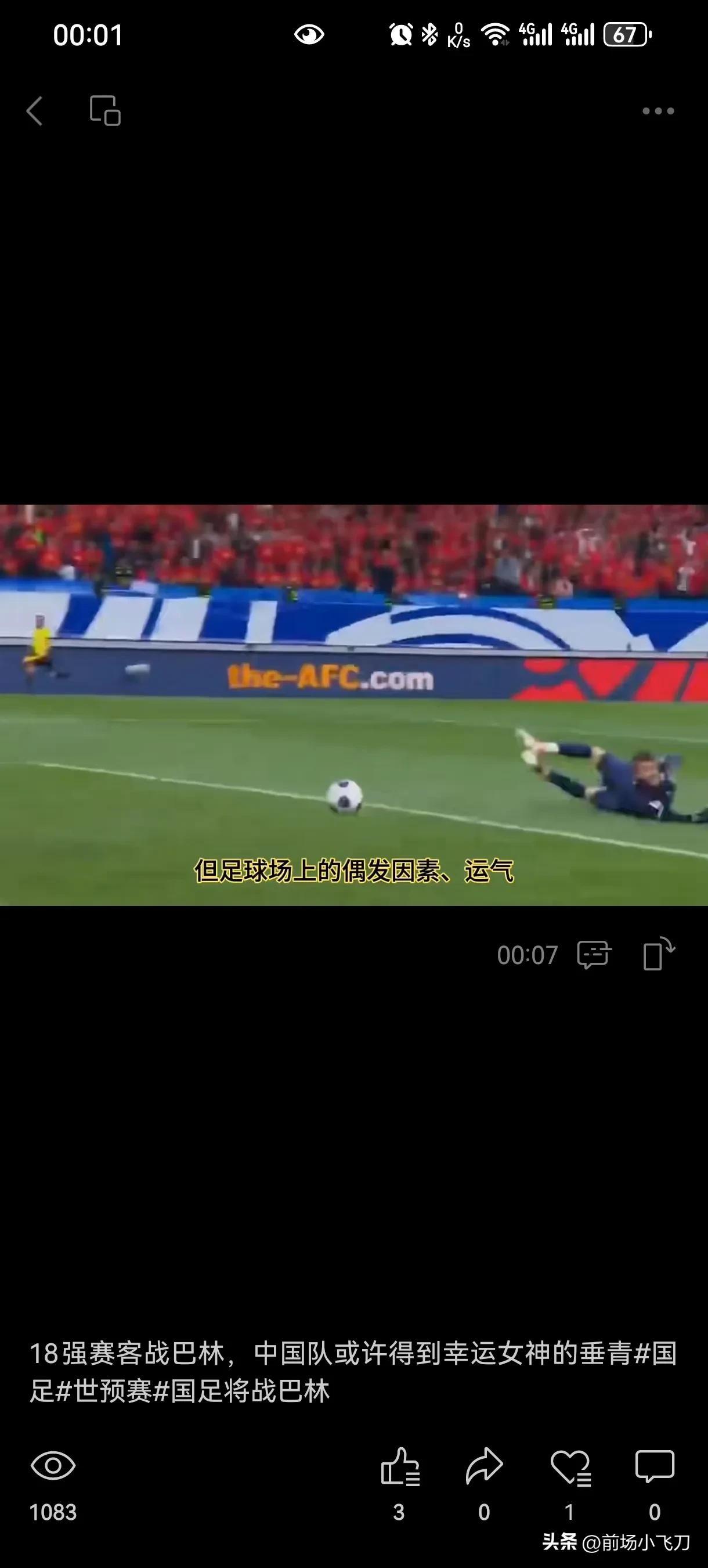 这个视频的标题是:“18强赛,国足客战巴林,有好运。”